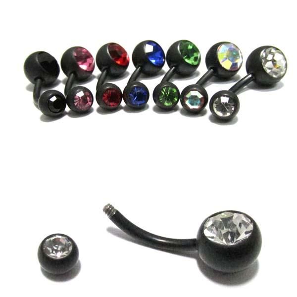 全7色!マットブラック ダブルジュエル バナナバーベル 【14G(1.6mm)】