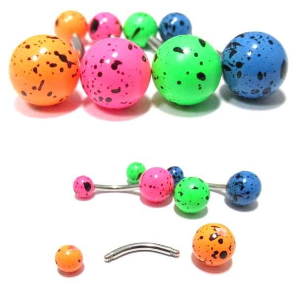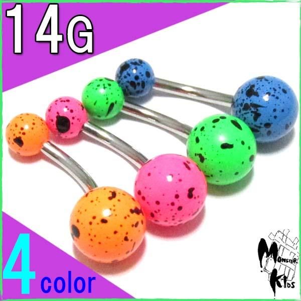 カラフルなボールに黒いインクを飛びちらせた、スプラッシュなへそピアスです。