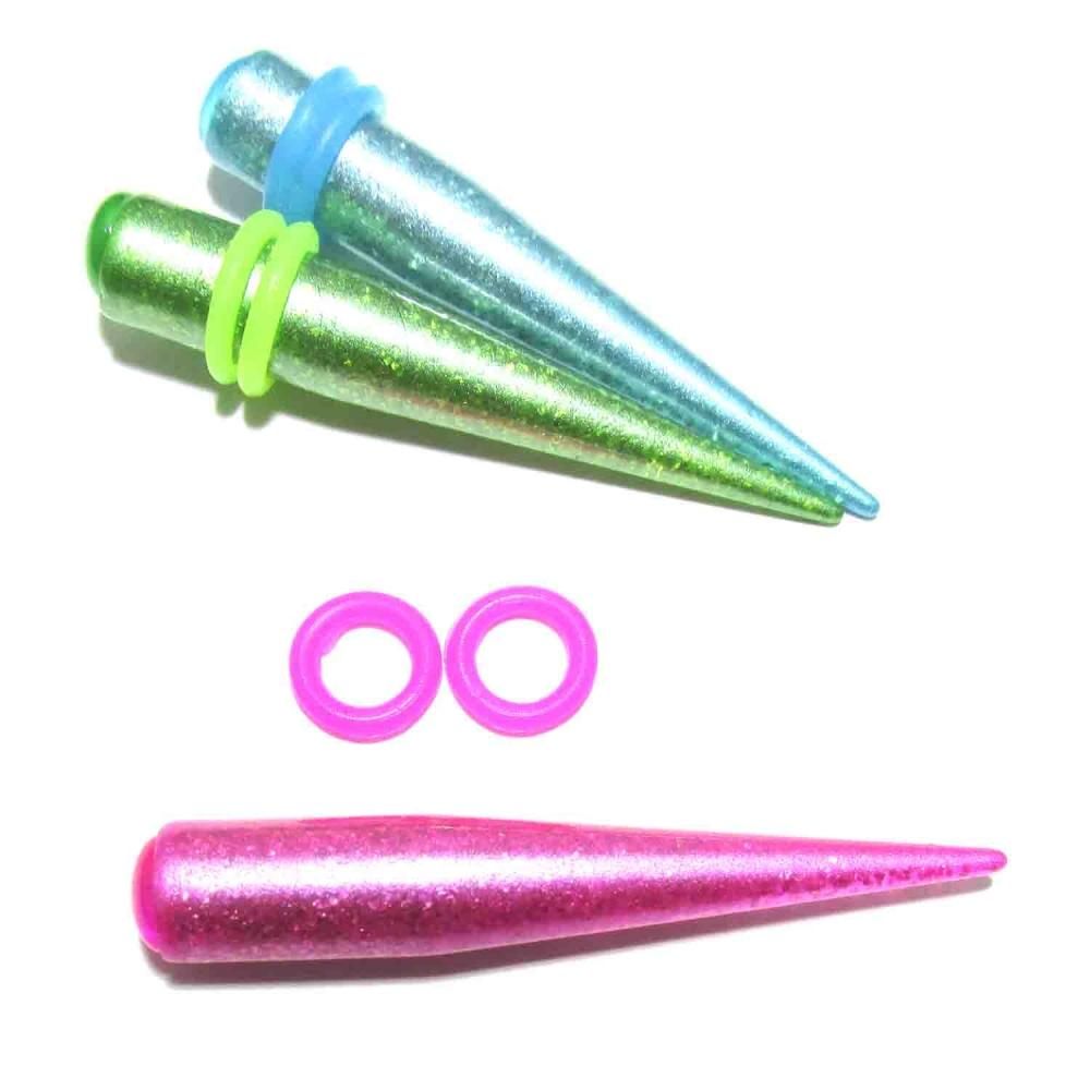 ボディピアス アクリルグリッターデザイン拡張器【00G(10.0mm)/ピンク・グリーン・ブルー】BPEX-13-00G
