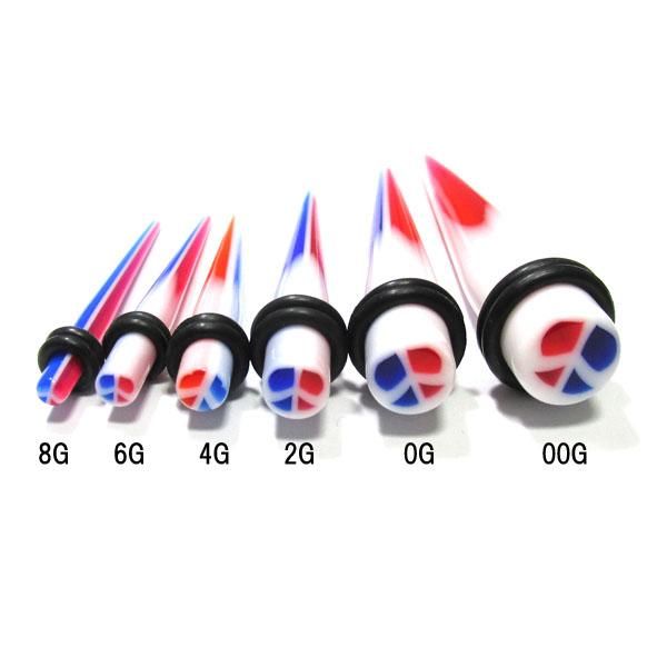 ボディピアス アクリルトリコロールカラーピースマークデザイン拡張器【2G(6.2mm)】BPEX-15-02G