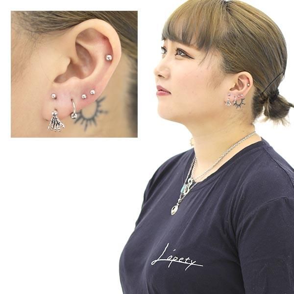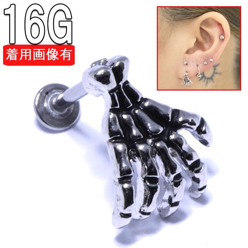 骨の手がモチーフになったロックテイストあふれるデザインのボディピアスです。