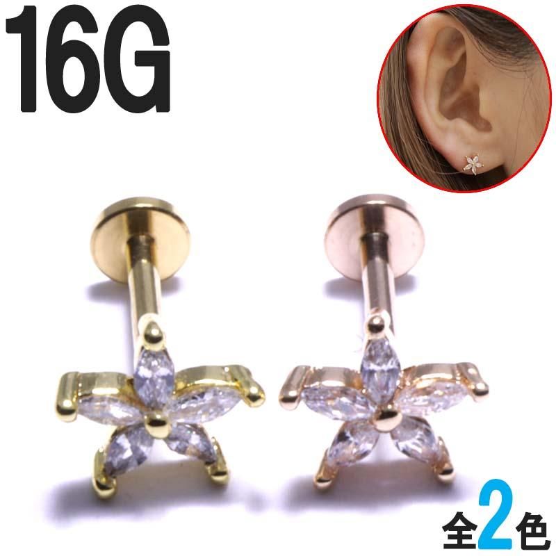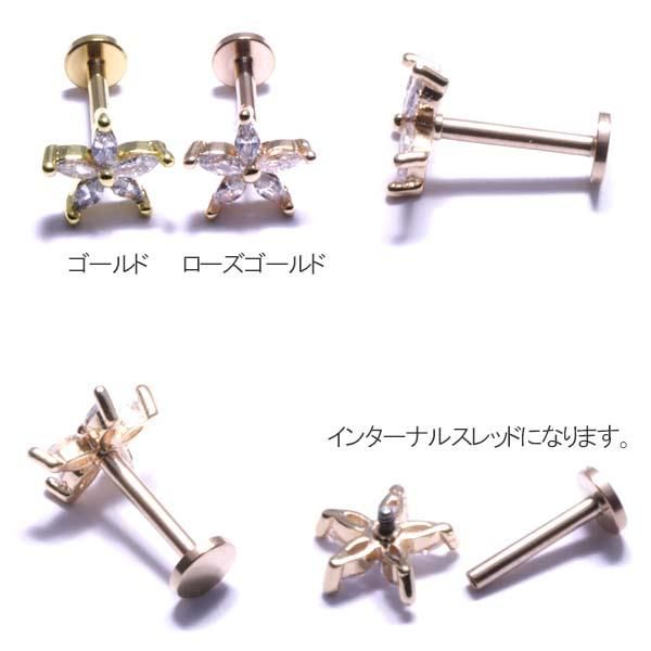 ボディピアス 16G クリアジュエル フラワー インターナルラブレット スタッズ BPLT-76
