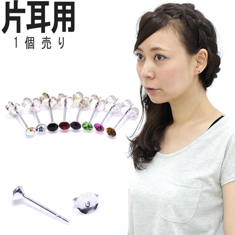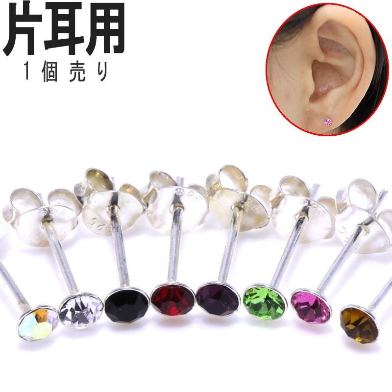 シンプル1ジュエルスタッドピアス 全8色・片耳1ヶ売り/925スターリングシルバー ASP-15