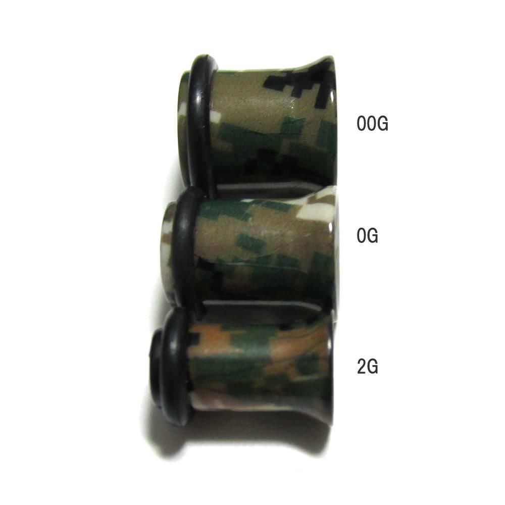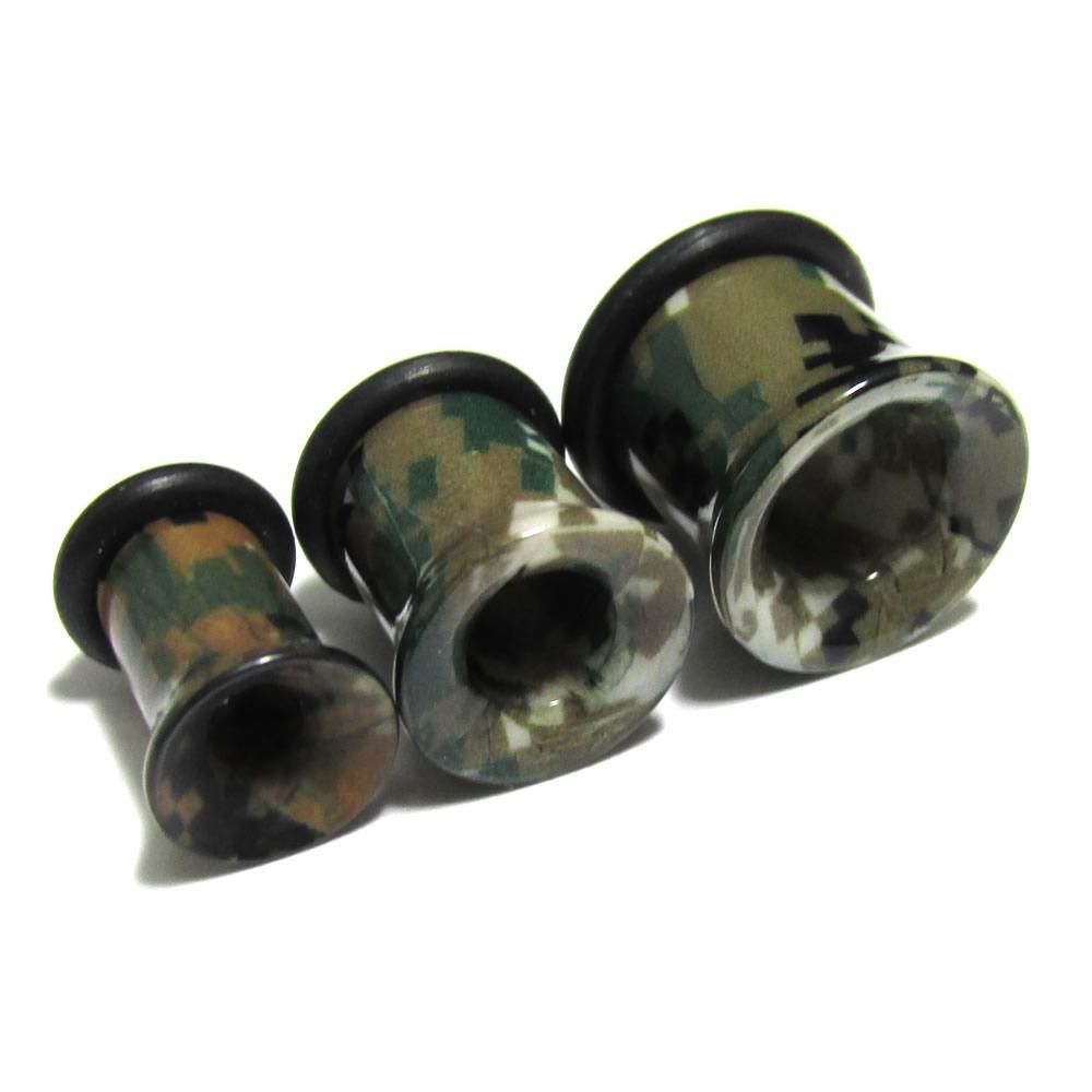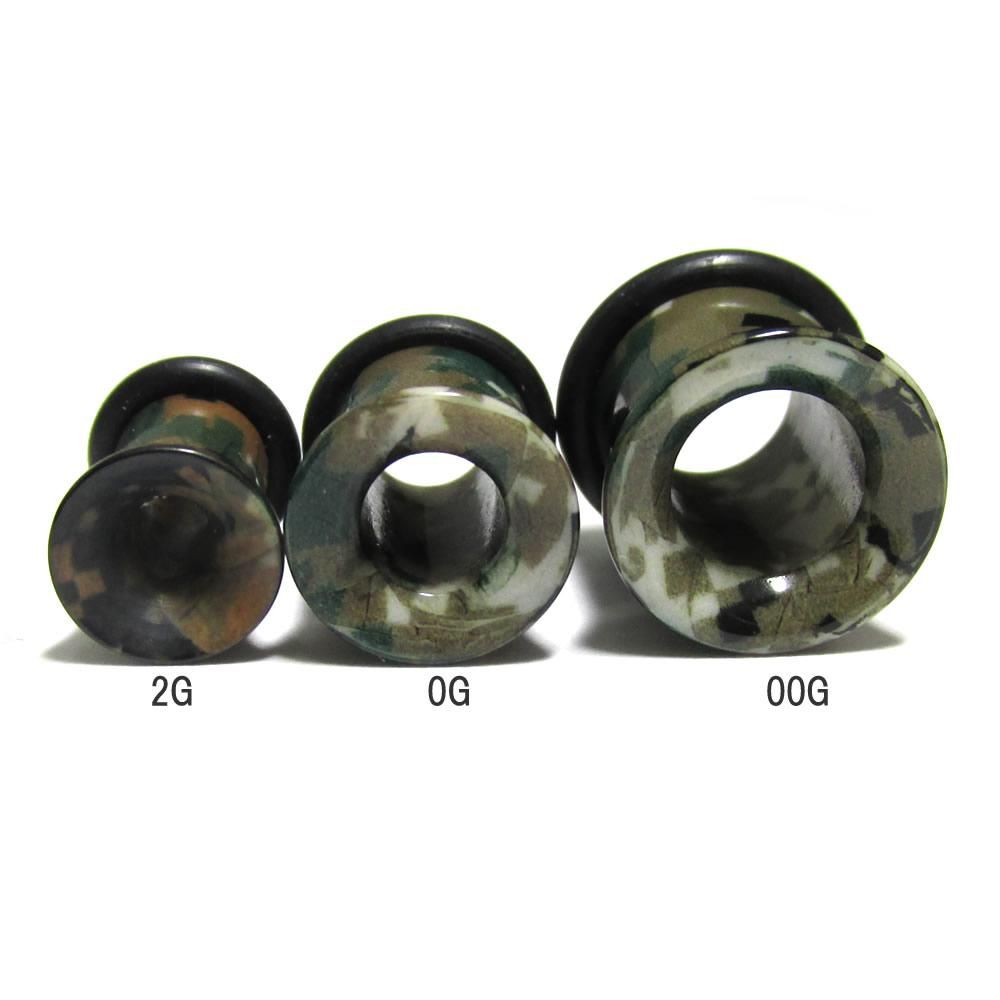 全面が迷彩柄のデザインされたシングルフレアアイレットのホールピアスです。